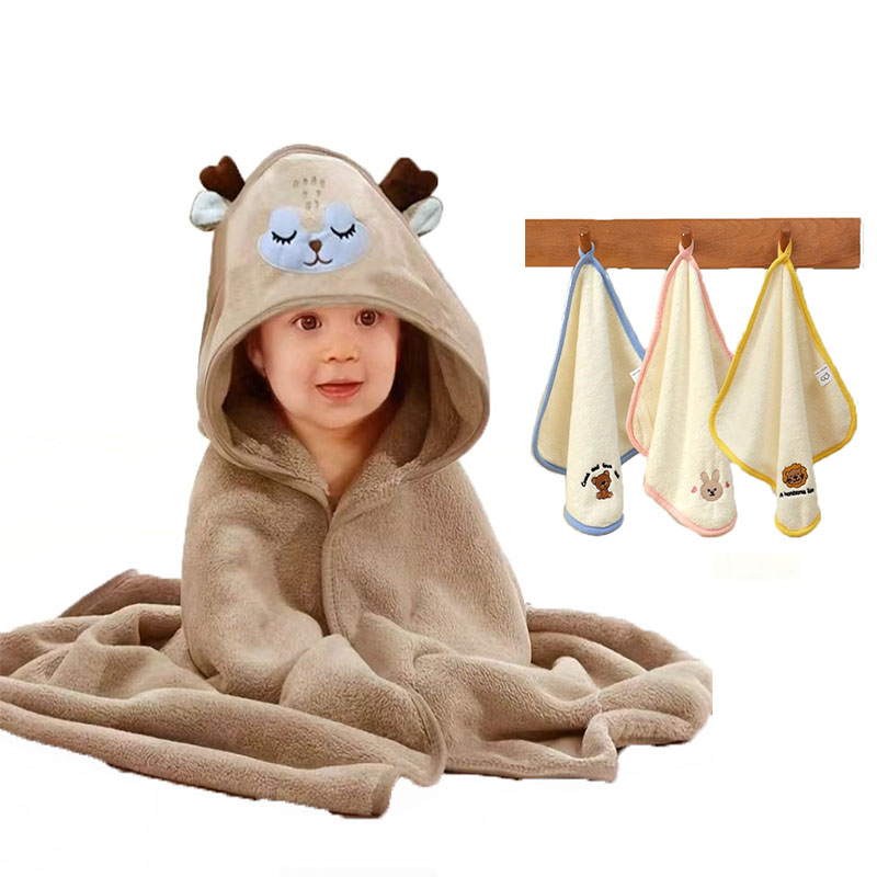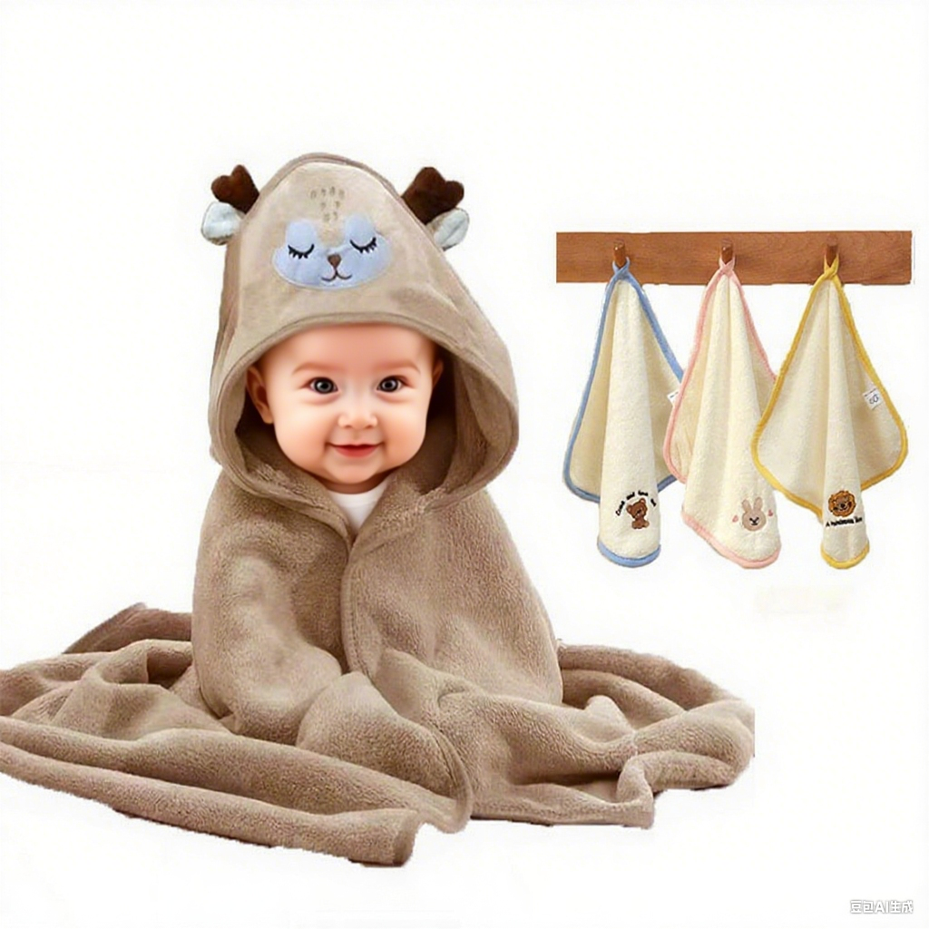 咖色萌鹿婴儿浴巾套装