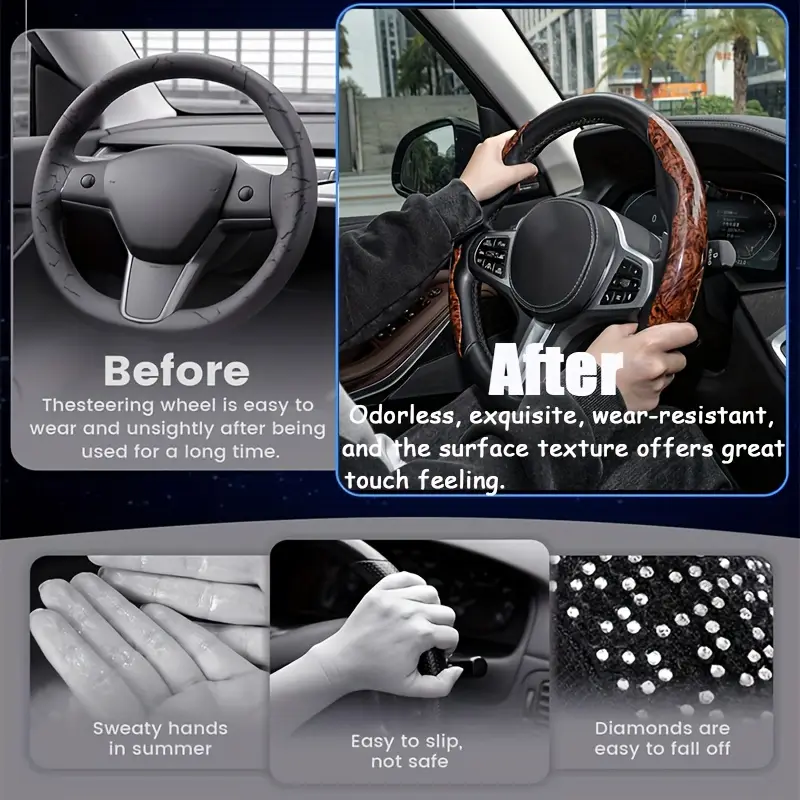 • 【提高安全性】与其它产品不同,方向盘套内侧的防滑衬里不会划伤原装方向盘。 防滑衬里将紧贴方向盘,提供更好的抓地力,让您在道路上获得更多的控制和安全性。