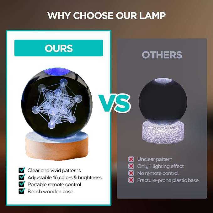 | 包装清单 | 60 塔特隆立方体水晶球夜灯 |